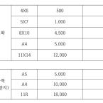 전주 향교스튜디오 사진관 사진촬영 및 사진인화 등 상품별 촬영 가격표입니다. 대량 출력은 파일을 보내주시면 작업하여 보내드립니다.